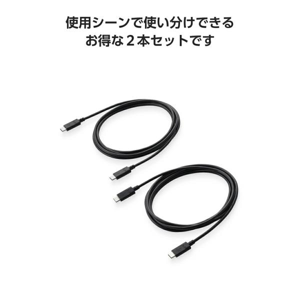 エレコム USB Type-C - USB Type-Cケーブル USB2.0 スタンダード 2本セット USB Power Delivery対応 60W 2.0m ブラック MPA-CCECTW20BK