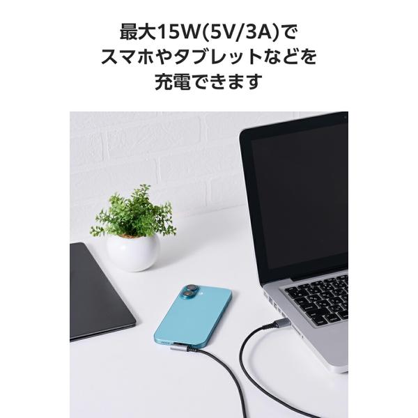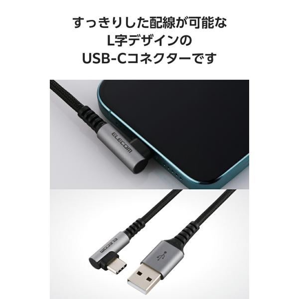 エレコム Type-Cケーブル USB-A to Type-C 2.0m 最大15W USB2.0 片側L字 ブラック MPA-ACECL20BK