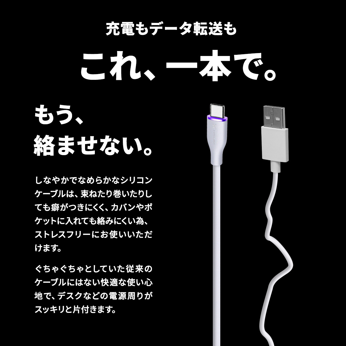 HELEC USB充電ケーブル 100w iphone タイプC データ転送 シリコン しなやかで丈夫 スマホ Type-C Power Delivery 急速充電 PC コントローラー充電