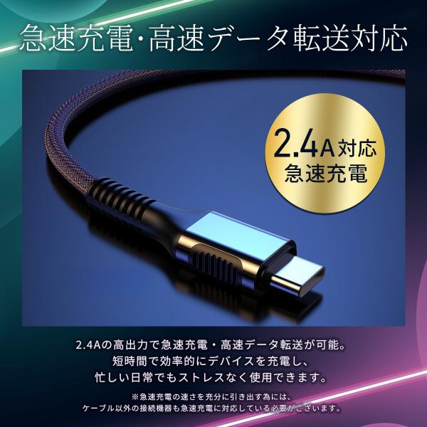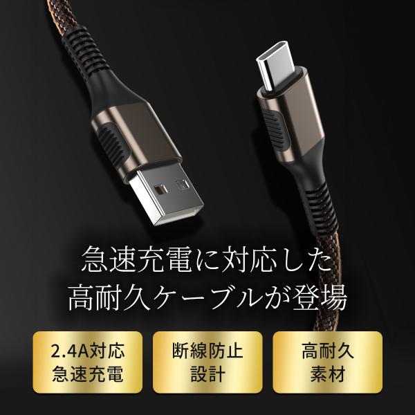 充電ケーブル 2本セット タイプc 断線防止 急速充電 USB Type-C 2m 2.4A 高耐久 高速充電 高速データ転送 アンドロイド Android iOS PC対応 iPhone スマホ