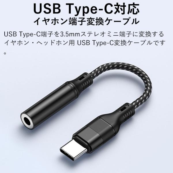 USB Type-C to 3.5mm イヤホンジャック タイプC イヤホン変換アダプタ 変換ケーブル USB-C to 3.5mm オーディオアダプタ 高耐久 ナイロン編み 通話/音量調節