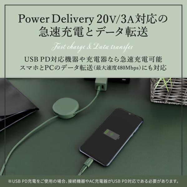充電ケーブル Type-C to Type-C 巻き取り 持ち運び 収納 90cm 片引き アースカラー