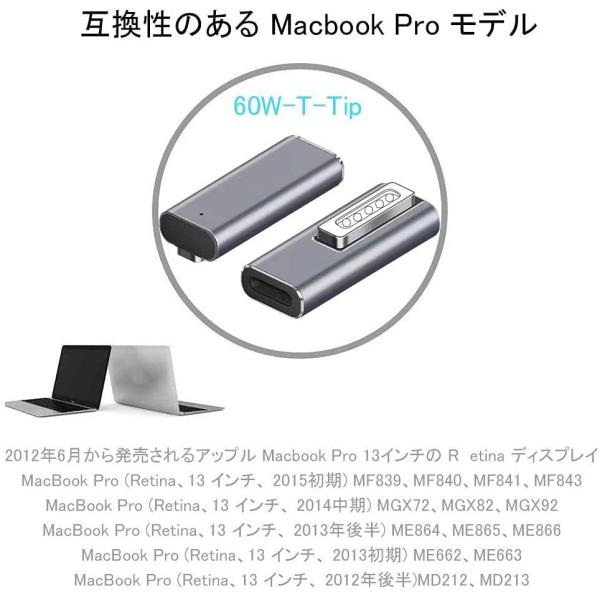 MacBook Air Pro USB C MagSafe2 磁気充電アダプター Type C 変換 充電器 PD60W 最大100W (MagSafe2対応の2012年中期以降のモデル)(商品説明のモデル要確認)