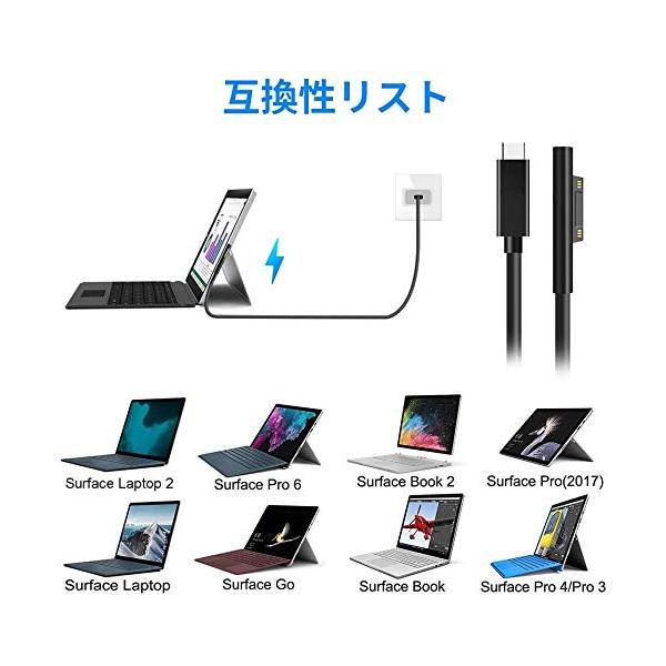 Surface 充電ケーブル type-c 1m USB-C 変換 PD 急速充電 45w15v以上のPD充電器が必要 Connect to TYPE-C 15VPD充電に対応 黒 ブラック