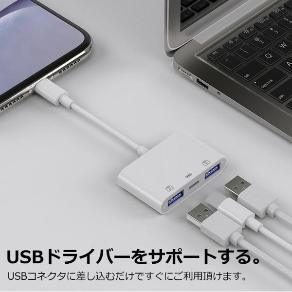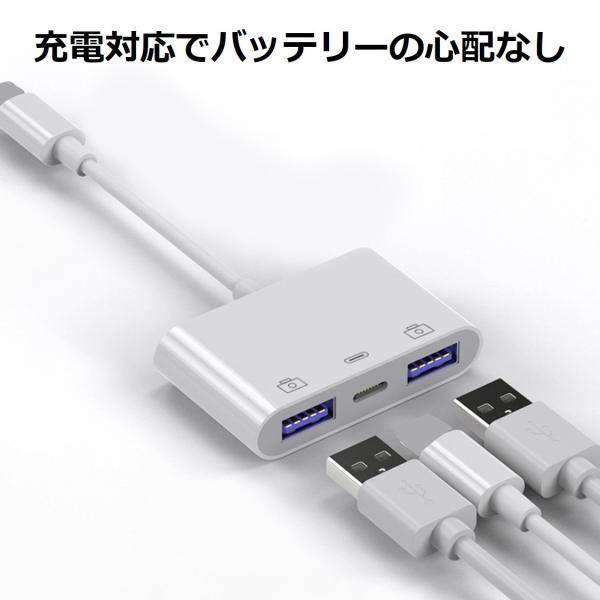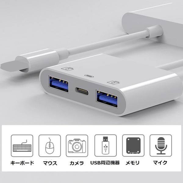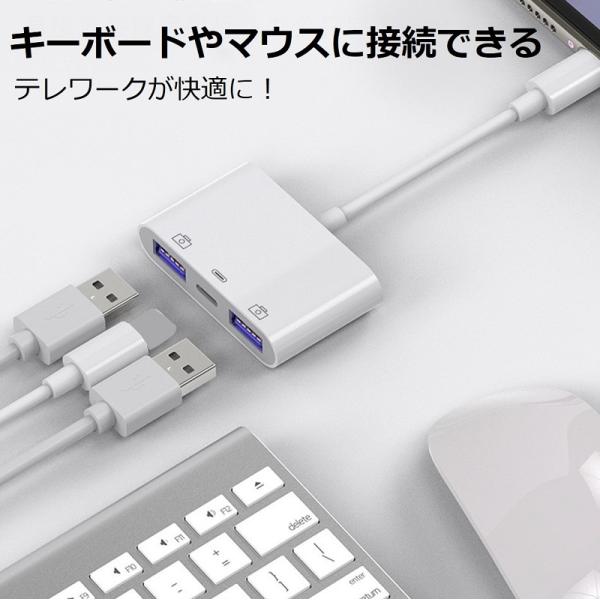 OTG 変換アダプタ 3in1 USB カメラ 変換 lightning to USB 充電対応 iPhone iPad OTGケーブル 充電しながら 双方向データ転送 写真 ビデオ転送 アプリ不要