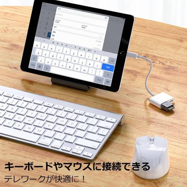 OTG 変換アダプタ USB カメラ 変換 lightning to USB 充電対応 iPhone iPad OTGケーブル 充電しながら 双方向データ転送 写真 ビデオ転送 アプリ不要 送料無料