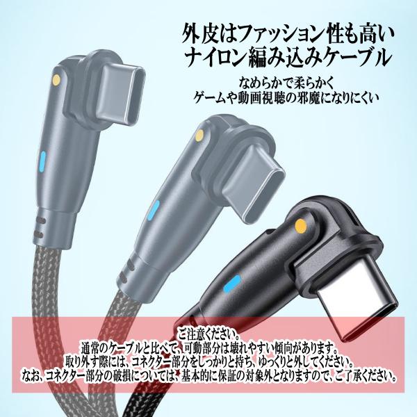 type-c タイプc 充電ケーブル ゲーミング 180度 回転 タイプc l型 Typec USBケーブル スマホ ケーブル コード 携帯 コード l字 2本セット