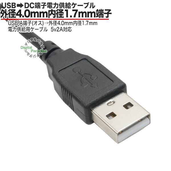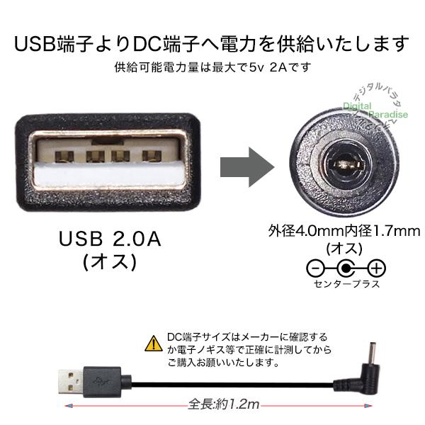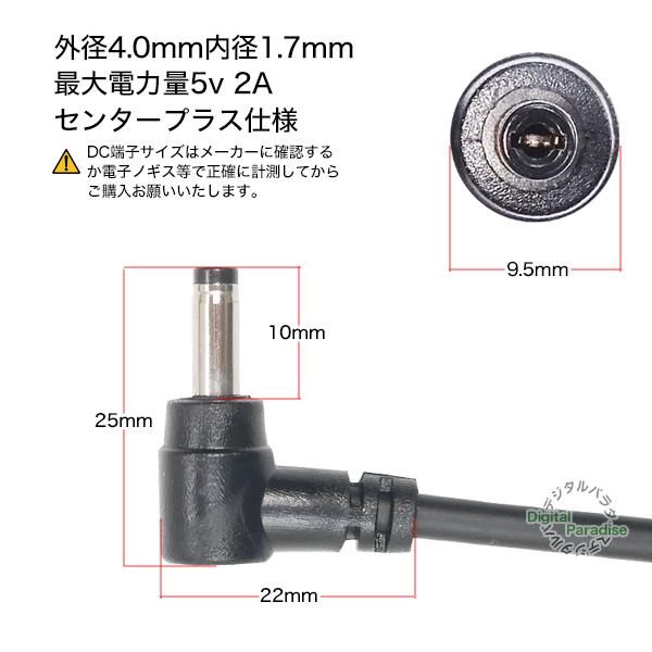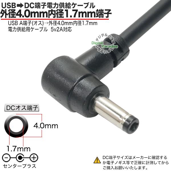 外径4.0mm内径1.7mm直角 DC端子⇔USB(オス)電源供給ケーブル 1.2m チャレンジタッチ PSP・ゴリラ充電等 COMON DC-4017A