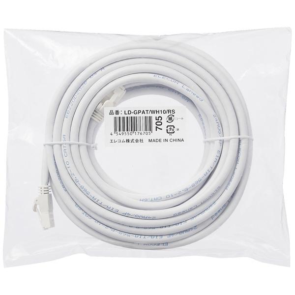 ELECOM LD-GPAT/WH10/RS LANケーブル/ CAT6A対応/ EU RoHS指令準拠/ 爪折れ防止/ 簡易パッケージ仕様/ 10m/ ヨリ線…