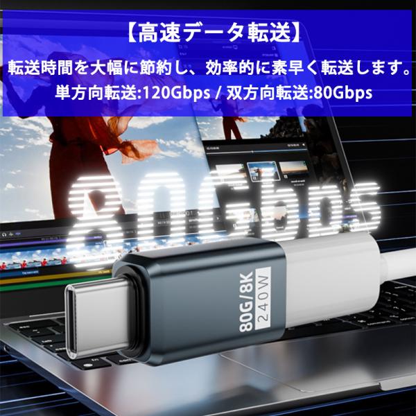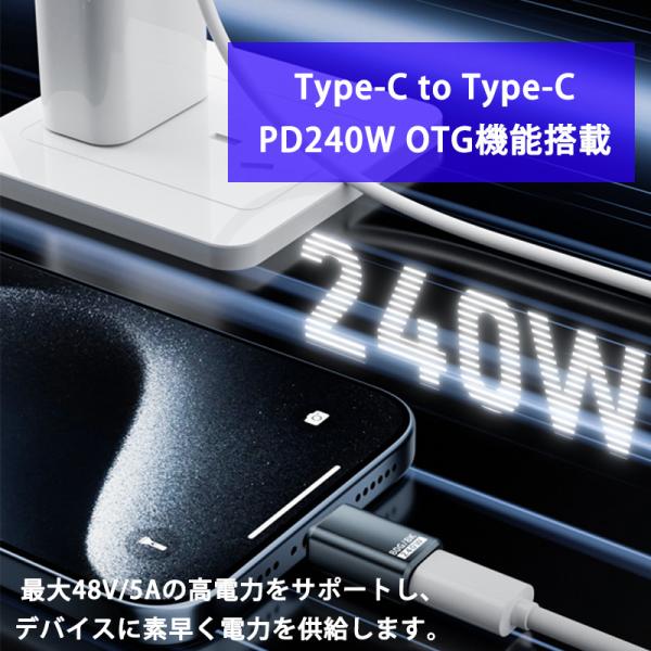 USB-C to USB-C コネクター 240W 48V 5A PD充電 タイプC アダプター OTG対応 急速充電 データ転送 80Gbps 8K 映像出力 Type-C スマートフォン タブレット