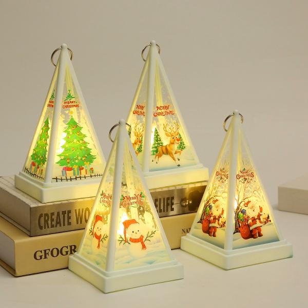 2023年NEW 三角形クリスマス装飾LEDライト 4種類デザイン 本体ホワイト色 点灯色暖色 1.5V単4電池2個使用 テスト電池付き 蝋燭ライト 可愛い絵