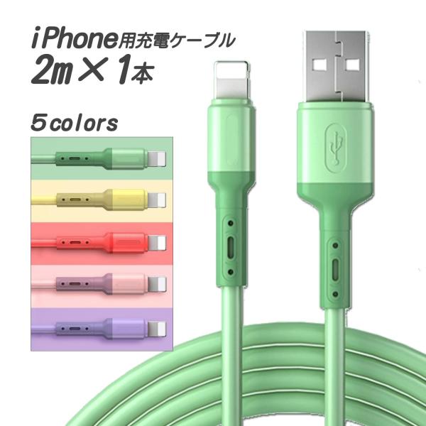 iPhone/iPad 急速充電ケーブル 2m 1本セット ライトニング充電ケーブル パープル ピンク グリーン シリコンゴム 充電コード ライトニングケーブル