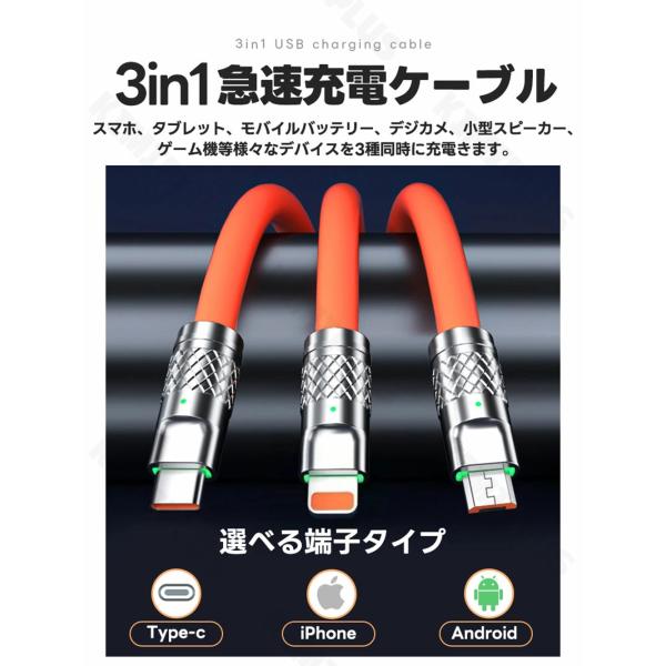 iPhone 充電ケーブル 3in1 lightningケーブル タイプc mfi認証 1.2m iPhone13 type-c l型 シリコンケーブル アンドロイド 急速 充電器 iPad 耐久性 純正品質