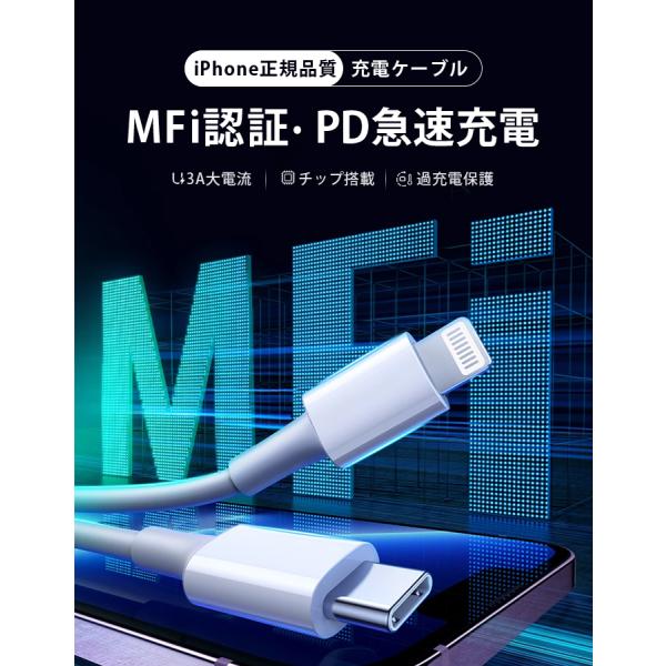 iPhoneケーブル 1m/2m iPhone純正品質 lightningケーブル 充電ケーブル MFI認証済 PD急速充電充電器 データ転送ケーブル アップル公式認証済 iPhone17 16 15用