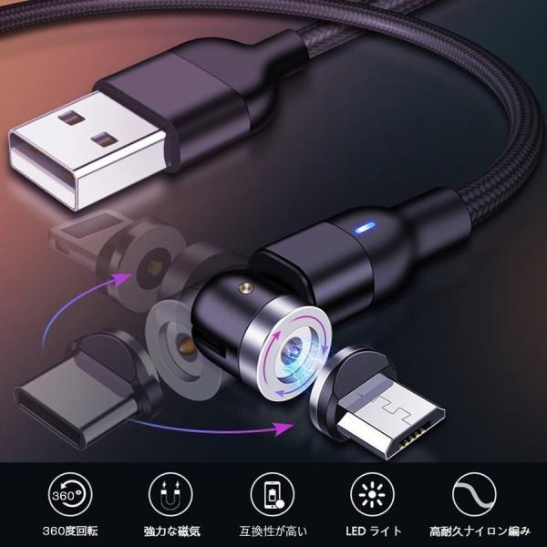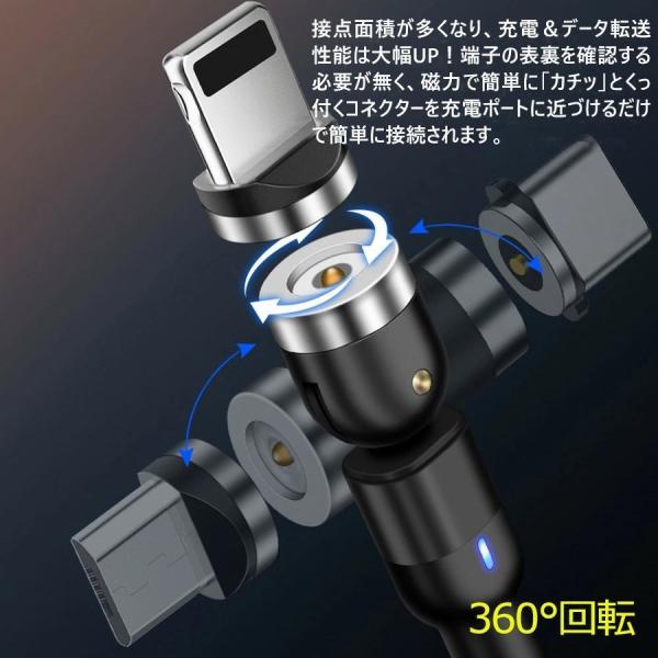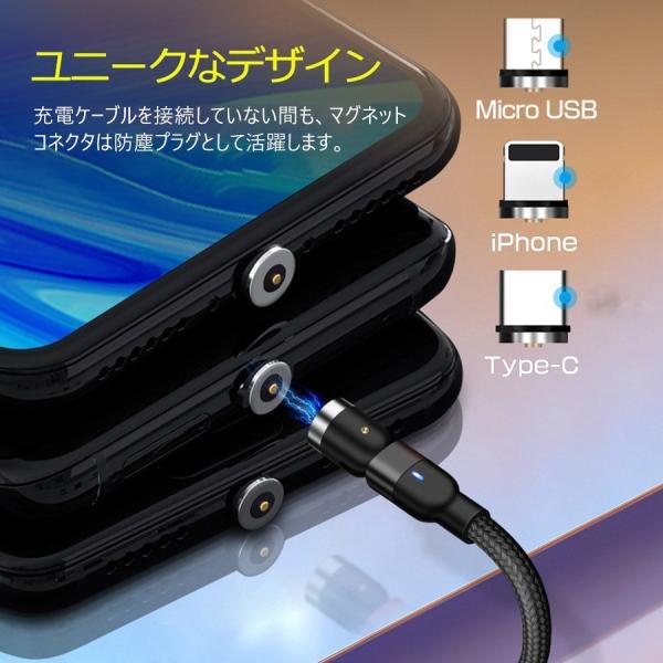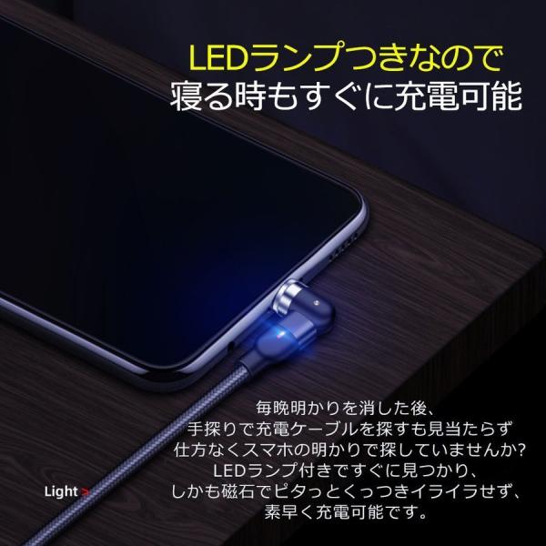 マグネット充電 ケーブル 2M 1ML字型 iPhone Type-C Micro USB 高速充電 LEDライト付き 磁石 防塵 着脱式 360度回転 ナイロン iPhone Android用