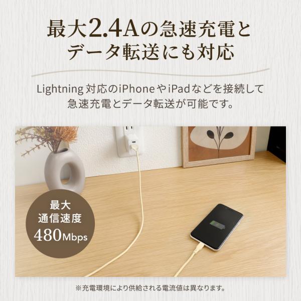 ライトニングケーブル 充電ケーブル やわらかく断線に強いAtoLケーブル 0.5/1.5m