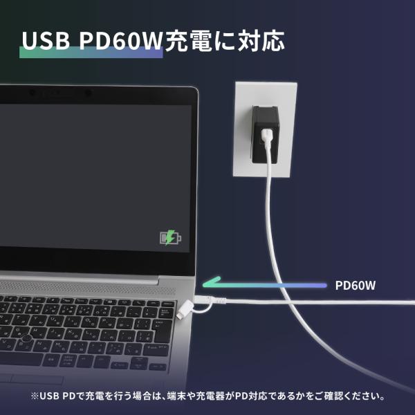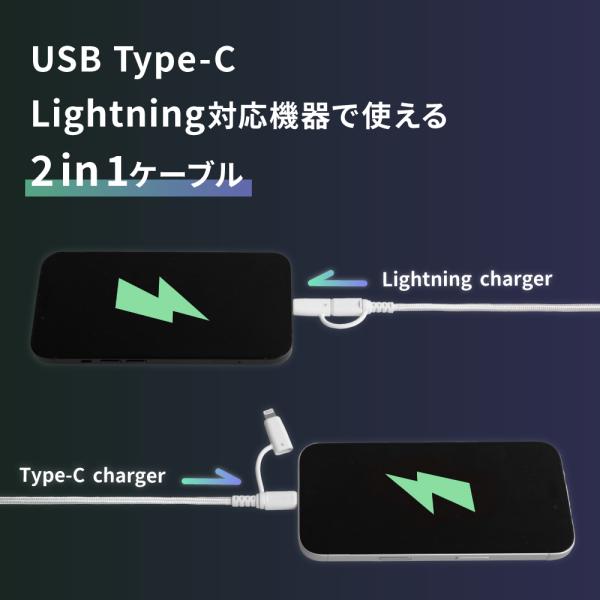 充電ケーブル 2in1 ライトニング type-c to type-c / Lightning PD60W 断線に強い