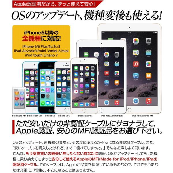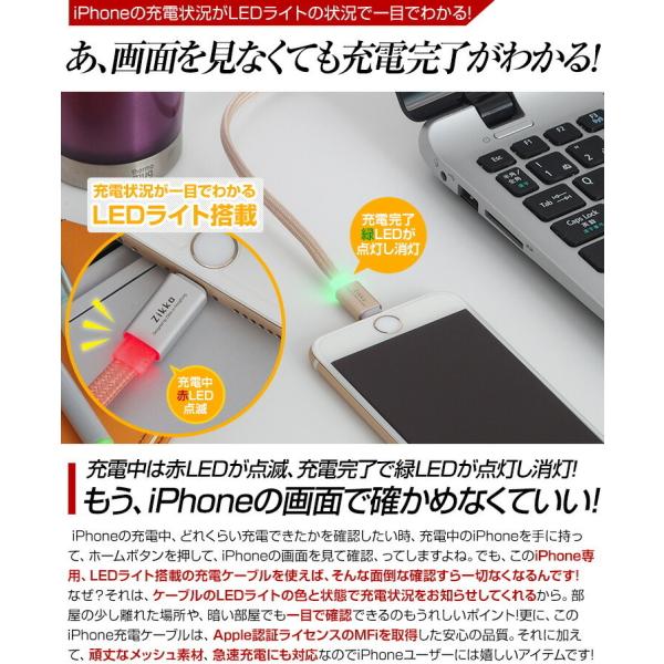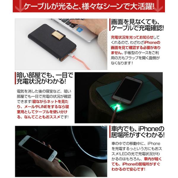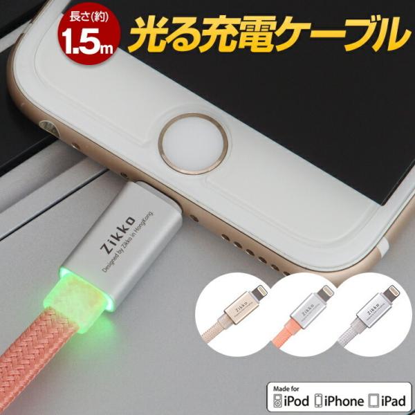 LEDライト搭載光る iPhone 充電ケーブル Apple 認証 iPhone usb ケーブル OSアップデートも安心 フラットケーブル .3R