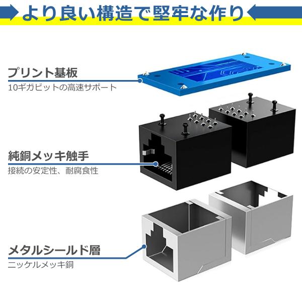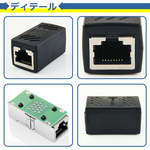 LANケーブル 延長 コネクタ cat7 cat6 cat5 RJ45 8P8C アダプタ ギガビット コンパクト ジョイント 中継 端子 便利 メス-メス
