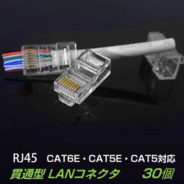 貫通型 LANコネクタ 30個セット RJ45 CAT6E CAT5E CAT5 LANケーブル用 配線簡単 爪折れにくい 8P8C 透明 初心者 ネットワーク かしめる お得