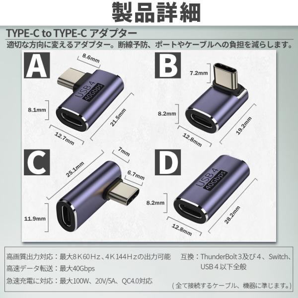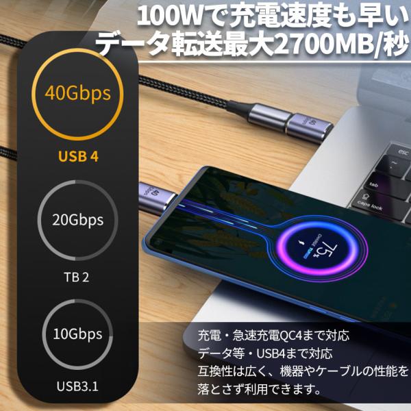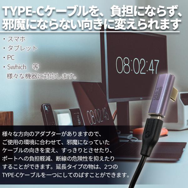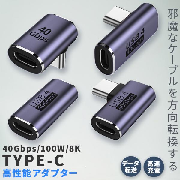 USB4.0 Type C アダプター 4種類 ストレート L字 L型 延長 接続 オス メス USB-C PD 100W/5A 急速充電 40