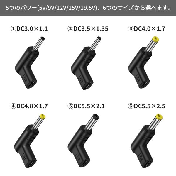 【500円から〜2個目半額/3個目タダ】 USB-C to DC 変換アダプタ DC充電コード L字型 PD充電 急速充電 5V 9V 12V 15V 19.5V 送料無料