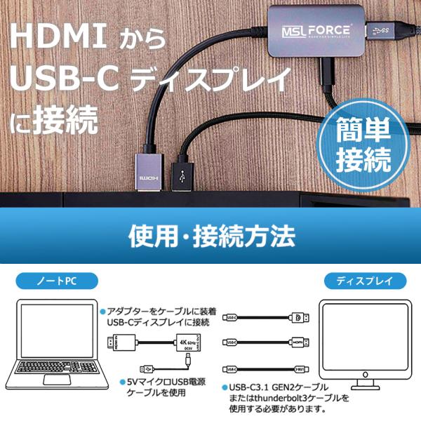 【最大600円OFF限定クーポン】HDMI to USB C Type-C変換アダプタ ウルトラHD 4K/60hz モニター AI 搭載メガネ対応 Switch対応 hd2usbc 送料無料