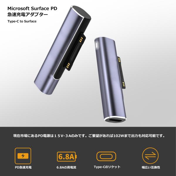 【750円から〜2個目半額/3個目タダ】 USB C to Surface Pro 急速充電アダプタ 15V/3A 65W USB Type C PD充電 102w Surface Pro 送料無料