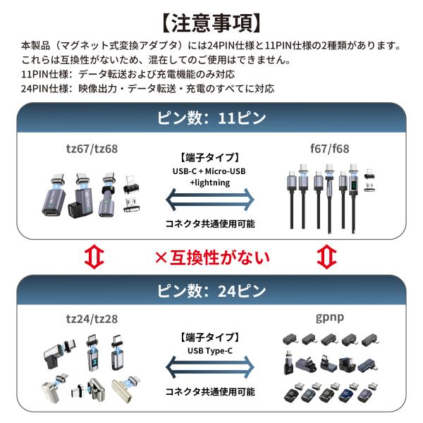 【1000円から〜2個目半額/3個目タダ】USB-C Lightning MicroUSB マグネット 磁気吸着 変換アダプタ 急速充電 データ転送 480Mbps PD100W tz6768 送料無料