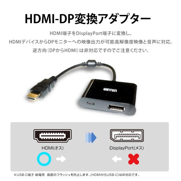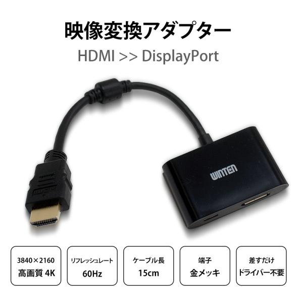 HDMI DisplayPort 変換アダプター 4K@60Hz 高解像度 WT-CHD02-BK 変換 コネクター 3840x2160 プロジェクター デュアルモニター 画面拡張 映像伝達 5012