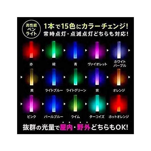 「数量限定2本セット」「ゴールド」コンサートライト LED15色カラーチェンジペンライト ライブスティック サイリュウム 電池付き