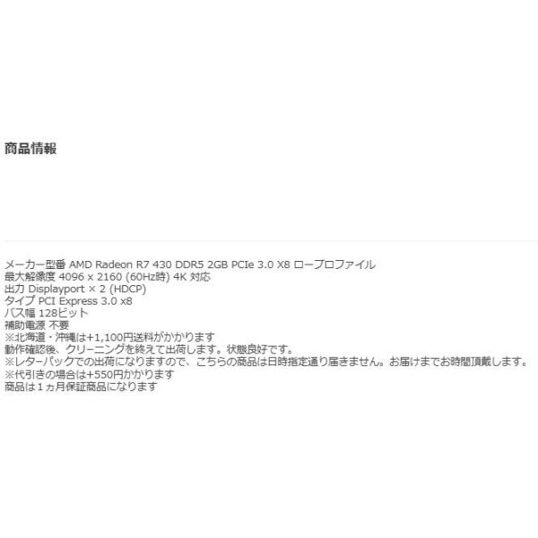 グラフィックカード AMD Radeon R7 430 DDR5 2GB ロープロファイル Displayport PCI Express x8 グラフィック グラボ 安い 1112n t-
