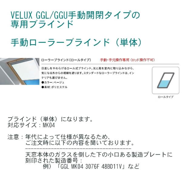 輸入建材ショップ/VELUX ベルックス天窓 GGL/GGU手動開閉タイプの手動ローラーブラインド(単体)[対象サイズ:MK04]