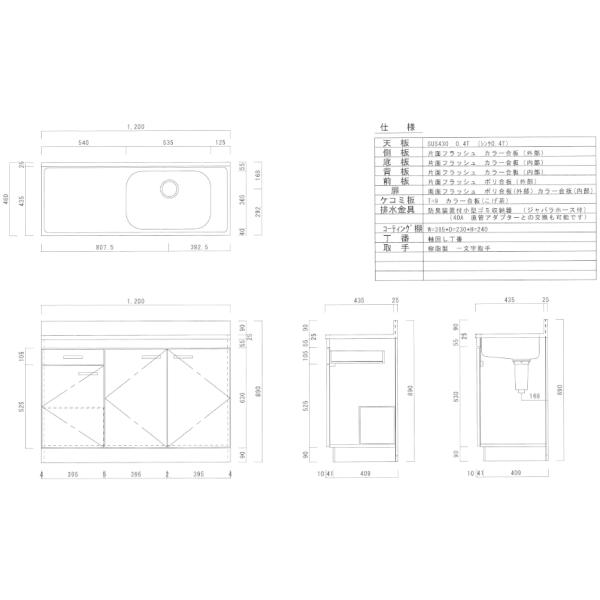 ニッサンハロー 流し台 C-Type 小型ゴミ収納器付 間口1200mm 奥行460mm 高さ800mm 立上90mm C46-120 ※ご注文前にお買い物ガイドを要確認※