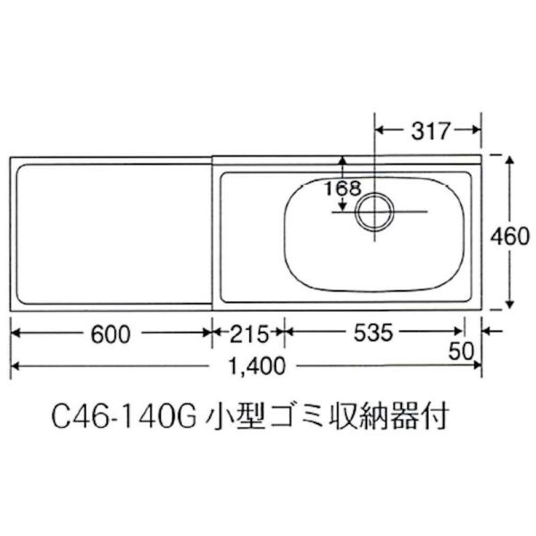 ニッサンハロー 公団型 流し台 小型ゴミ収納器付 間口1400mm 奥行460mm 高さ800mm 立上90mm C46-140G ※ご注文前にお買い物ガイドを要確認※
