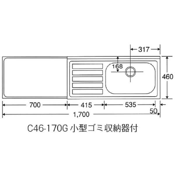 ニッサンハロー 公団型 流し台 小型ゴミ収納器付 間口1700mm 奥行460mm 高さ800mm 立上90mm C46-170G ※ご注文前にお買い物ガイドを要確認※