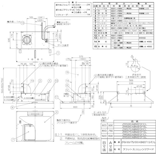クリナップ フラットスリムレンジフード シルバ― 間口75cm ZRS75ABZ21FSR-E/ZRS75ABZ21FSL-E【納期:約10営業日】