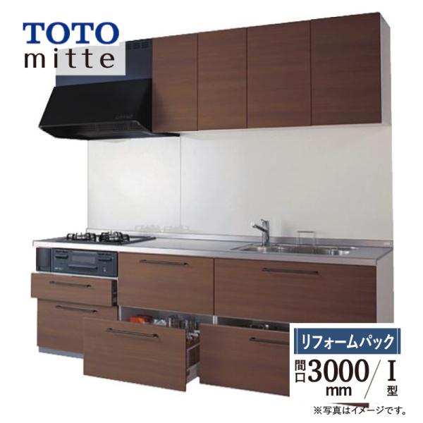 TOTO ミッテ mitte 間口3000mm I型 基本プラン システムキッチン 食洗機なし リフォーム 工事費込 無料見積 送料込 保証込 【リフォームパック】