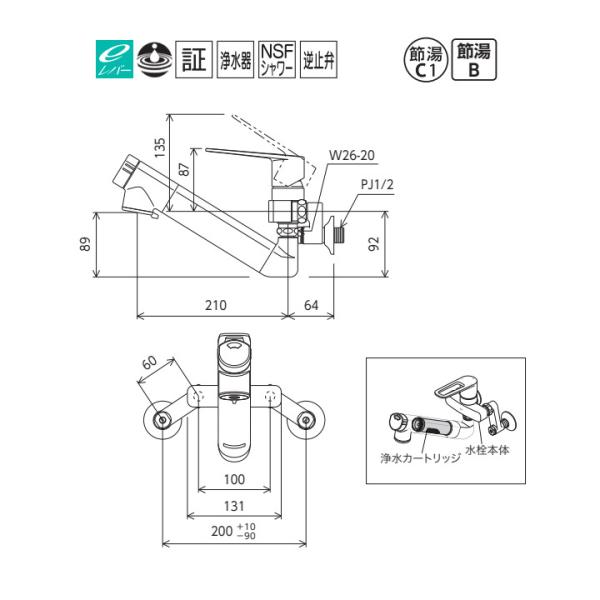 【MSK110KEJST2】KVK キッチン用 浄水器内蔵用シングル混合栓(eレバー) 浄水カートリッジ付