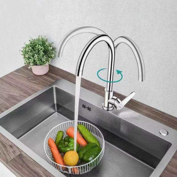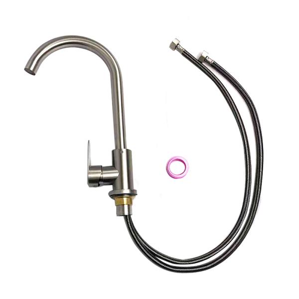 水栓 蛇口 カラン ステンレス 混合水栓 温冷水栓 3.2-3.5cm開口対応 フレキホース2本付属 丈夫で長持ち 取り付け簡単