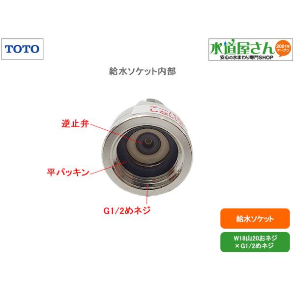 TOTO,TH5G0232,給水ソケット,洗面水栓給水ホース用止水栓接続部ソケット,逆止弁/パッキン2枚付き(W18山20×G1/2ネジ,TEK34UPASA他水栓用)