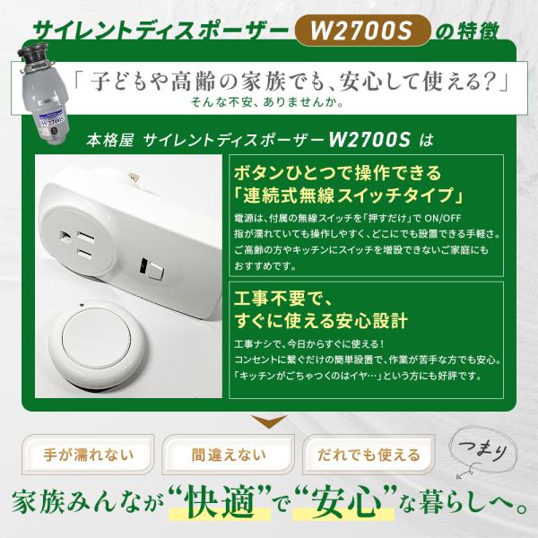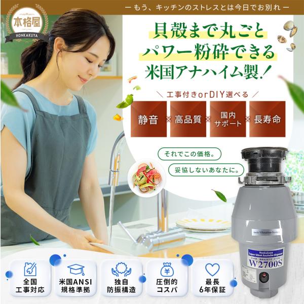 500円OFFクーポン 期間・台数限定配布中!アナハイムサイレントディスポーザー W2700S 取付部品付 連続式 防振あり 保証5年 即日出荷