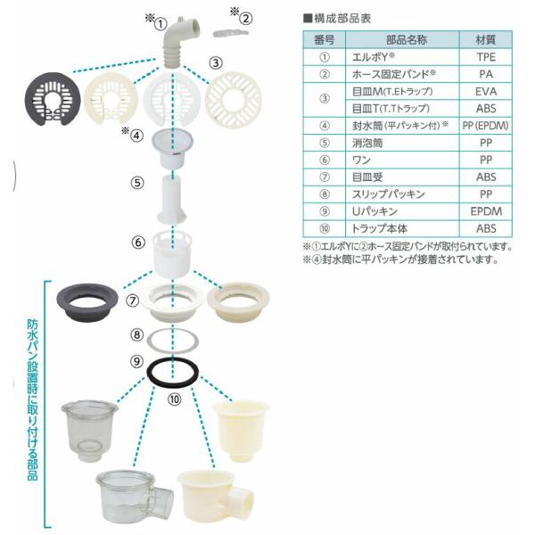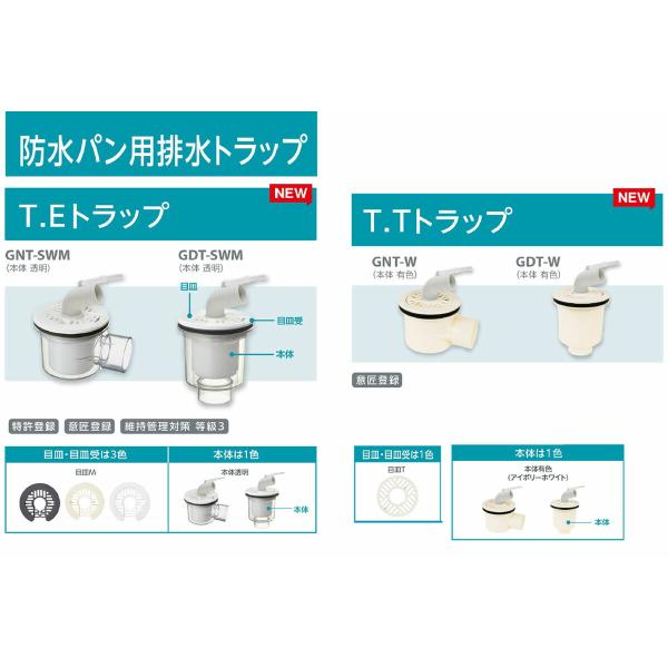 テクノテック 防水パン用排水トラップ T.Eトラップ ニューホワイト 【品番:GNT-SWM-W2】
