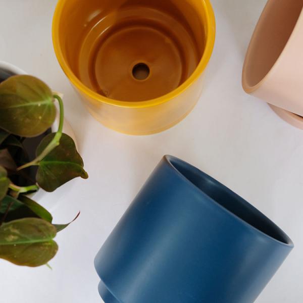 陶器鉢 オーセ11受皿付 おしゃれ シリンダー ミニ鉢 径11.5cm 高11cm 底穴あり