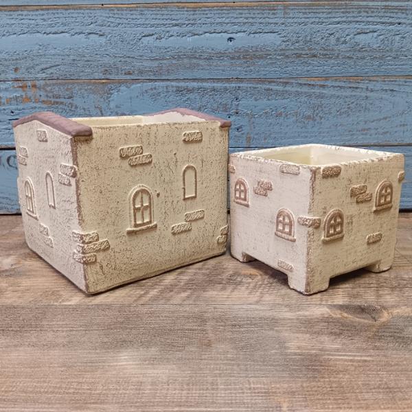 ガーデニング 雑貨 植木鉢 セメント鉢 植木鉢 鉢カバー 鉢 プランター アンティーク おしゃれ かわいい プチメゾンSET2 CN-CQ0227-80