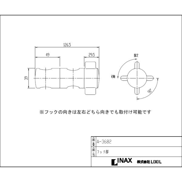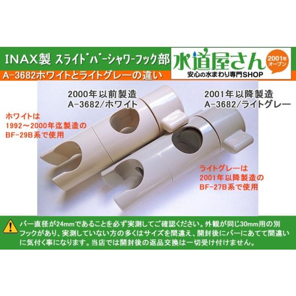 LIXIL,INAX,A-3682,取替えシャワーフック部,スライドバー付シャワーフック用,(バー直径24mm用,2001年以降製造スライドバーBF-27B系用,ライトグレー色)