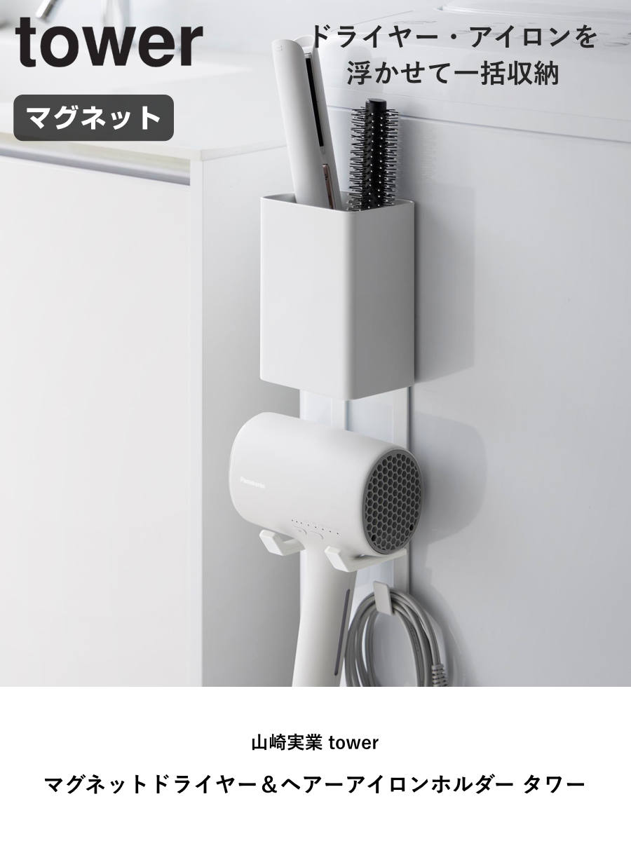 特典付き 山崎実業 tower マグネットドライヤー&ヘアーアイロンホルダー タワー ( 4903208105477 タワーシリーズ ドライヤーホルダー 磁石 )