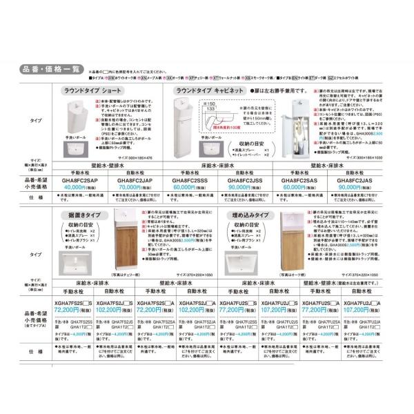パナソニック アラウーノ手洗い ラウンドタイプ キャビネット GHA8FC2SAS 手動水栓 壁給水・床排水