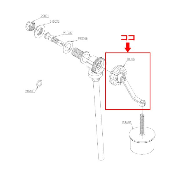 TOTO,THJ16,バルブレバー部,大便器タンク内ボールタップ用給水弁部一式(ロマンシア/デリシアシリーズ初期型ボールタップ用)