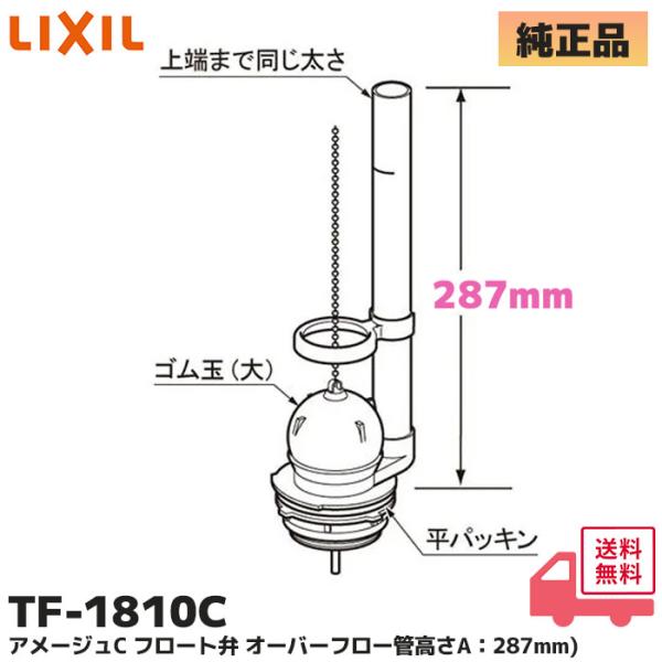 TF-1810C フロート弁部 LIXIL ( リクシル ) INAX ( イナックス ) ロータンク排水弁部(旧アメージュC洋風便器用,DT-1510/1810用) オーバーフロー管高さA:287mm